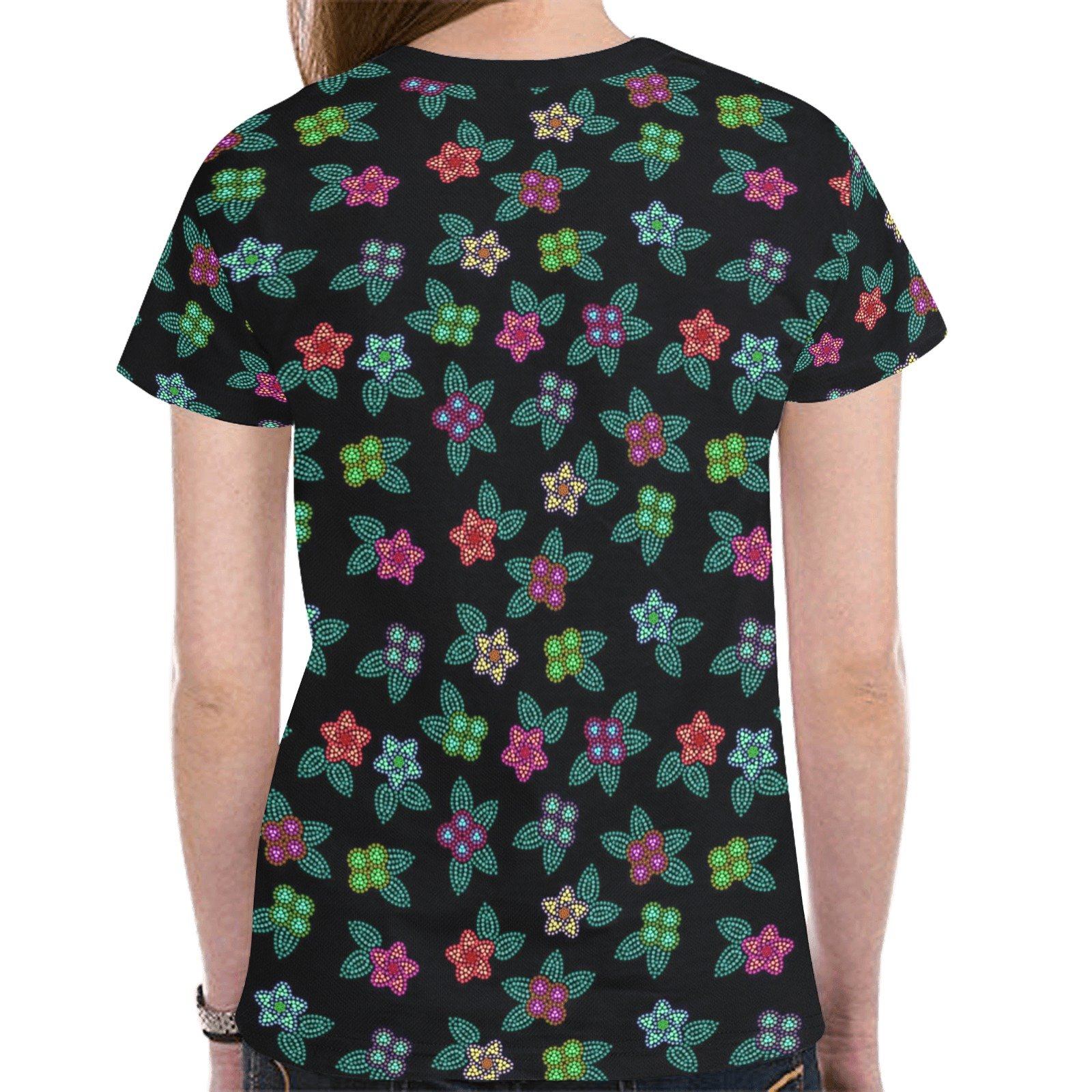 Berry Flowers Black T-shirt for Women