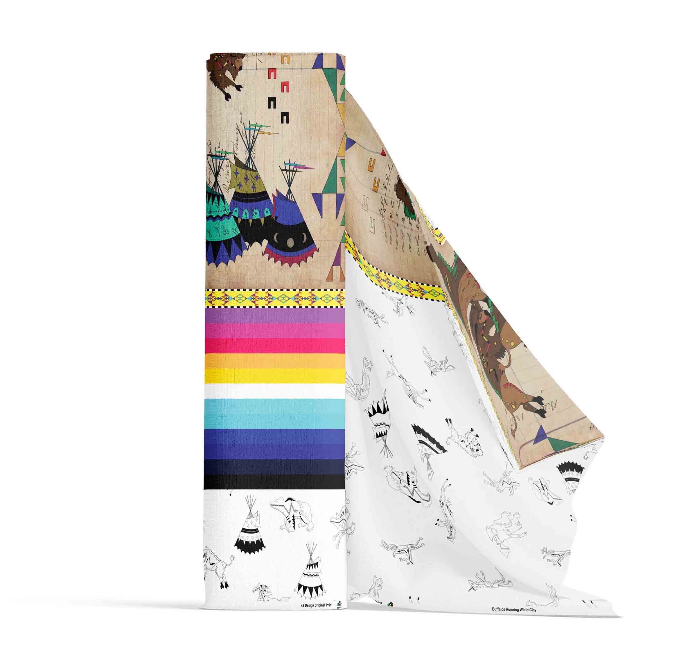 Ledger Buffalos Running White Clay 42 Inch Cotton Poplin Pre Order